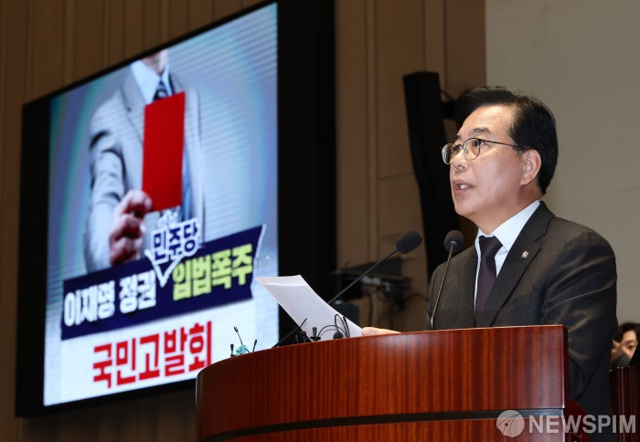 민주당 규탄하는 송언석 국민의힘 원내대표
