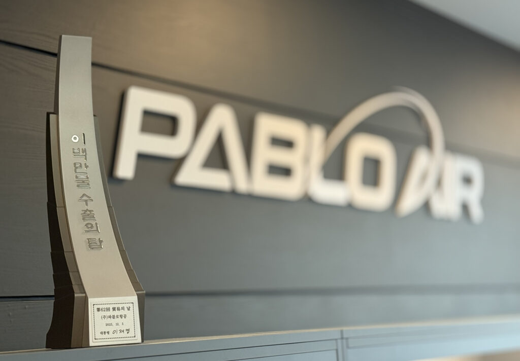 파블로항공이 지난 4일 열린 ‘제62회 무역의 날’ 기념식에서 ‘200만불 수출의 탑’을 수상했다. 이번 수상은 창사 이래 처음으로, 2021년 미국 법인을 설립하며 해외 시장에 진출한 지 3년 만에 거둔 성과다.