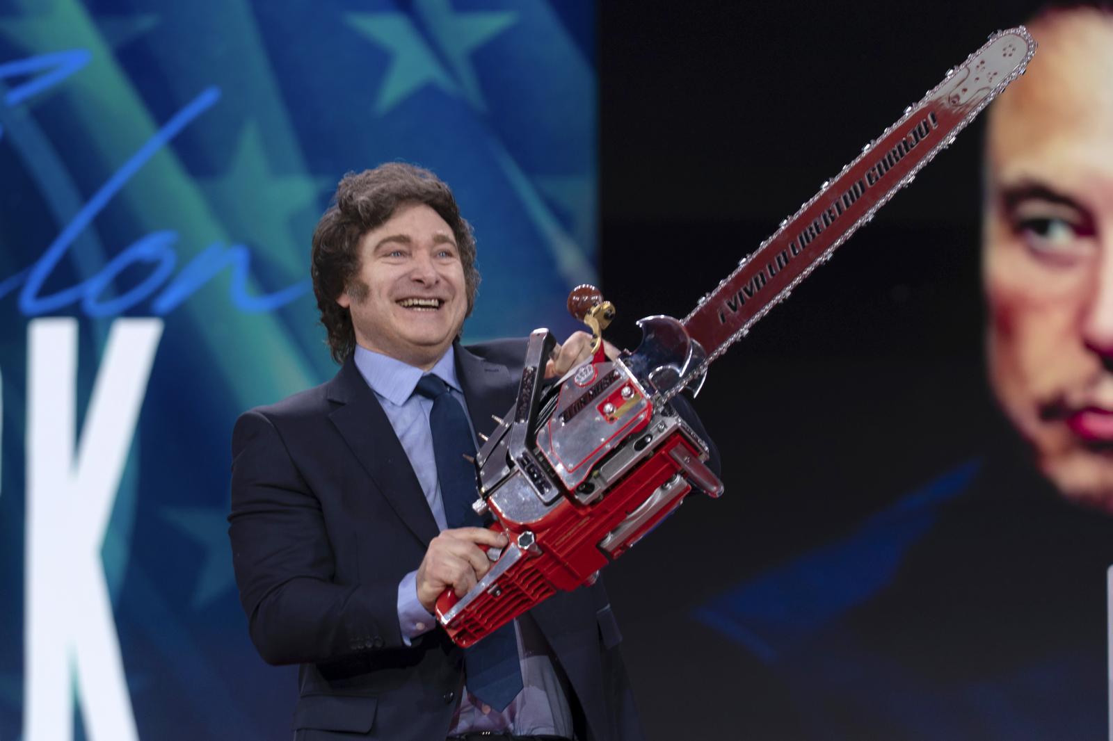 하비에르 밀레이 아르헨티나 대통령이 20일(현지 시간) 메릴랜드주 옥슨힐의 게이로드 내셔널 리조트 & 컨벤션 센터에서 열린 2025 보수정치행동회의(CPAC)에 참석해 전기톱을 들고 포즈를 취하고 있다. 2025.02.21 [옥슨힐=AP/뉴시스] |