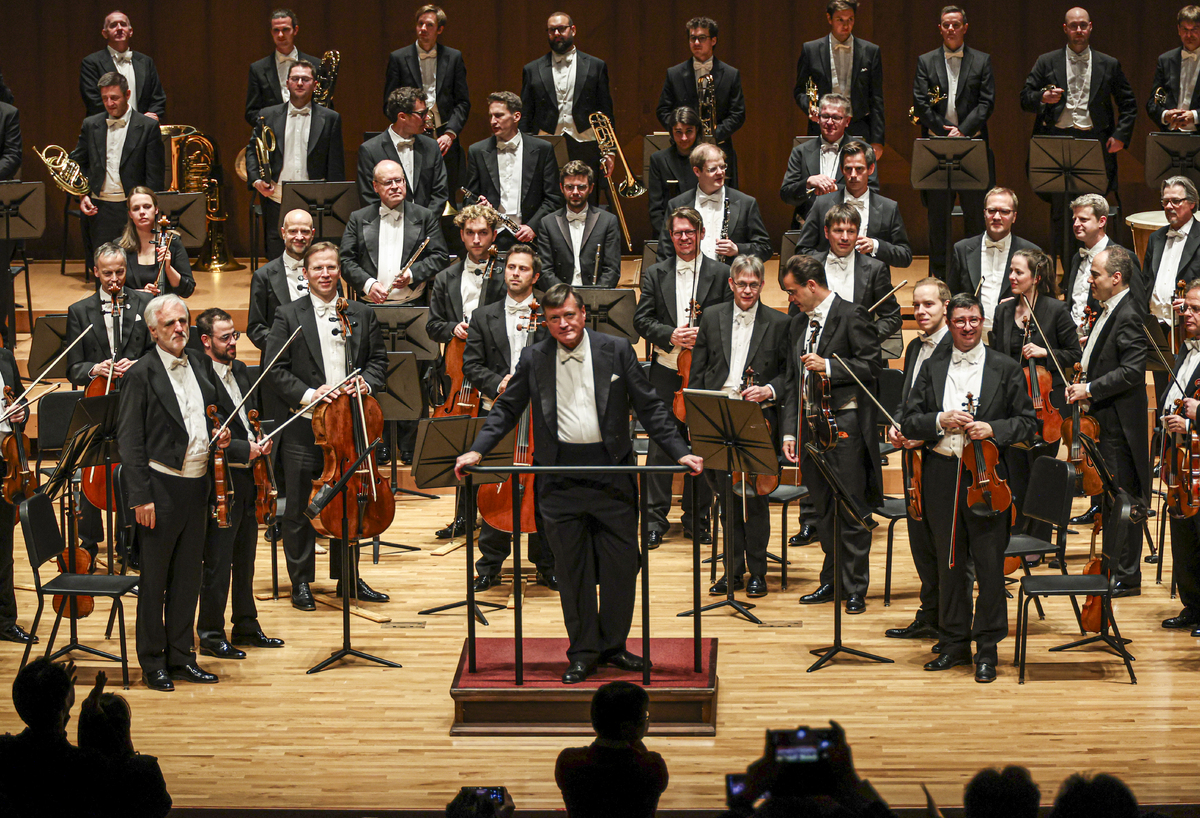 11월20일 예술의전당 콘서트홀에서 브루크너 교향곡 5번 피날레를 끝마친 크리스티안 틸레만과 빈 필하모닉. 한국경제신문 문화전시사업국 제공 |
