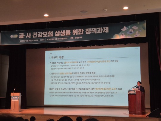 김진현 교수는 "공공보험 가입자가 공공의료체계의 통제를 벗어난 비급여 진료를 허용하는 국가는 OECD 회원국 가운데 한국이 유일하다"며 "이로 인해 공·사 모두의 재정 부담이 지속적으로 확대되고 있다"고 우려했다.