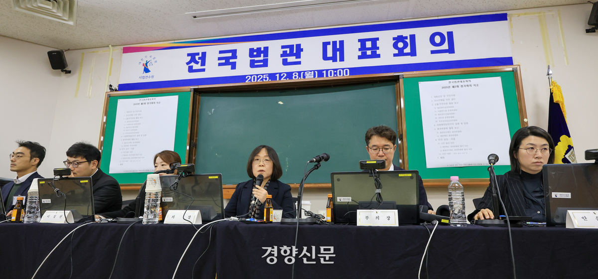 전국법관대표회의는 8일 약 6시간에 걸쳐 경기 고양시 사법연수원에서 정기회의를 열었다. 법관들은 이 자리에서 대법관 증원 등 상고심 제도 개편 관련 안건, 법관 인사와 평가제도 변경 관련 안건, 내란재판부 설치와 법 왜곡죄 관련 안건을 논의했다.