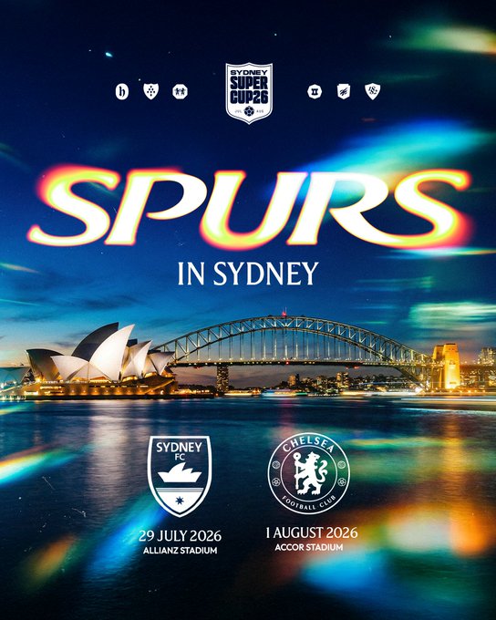 (엑스포츠뉴스 윤준석 기자) 토트넘 홋스퍼가 2026년 여름 호주 시드니에서 펼쳐질 프리시즌 일정을 공개하며, 아시아 투어에 대한 기대감이 높아지고 있다.