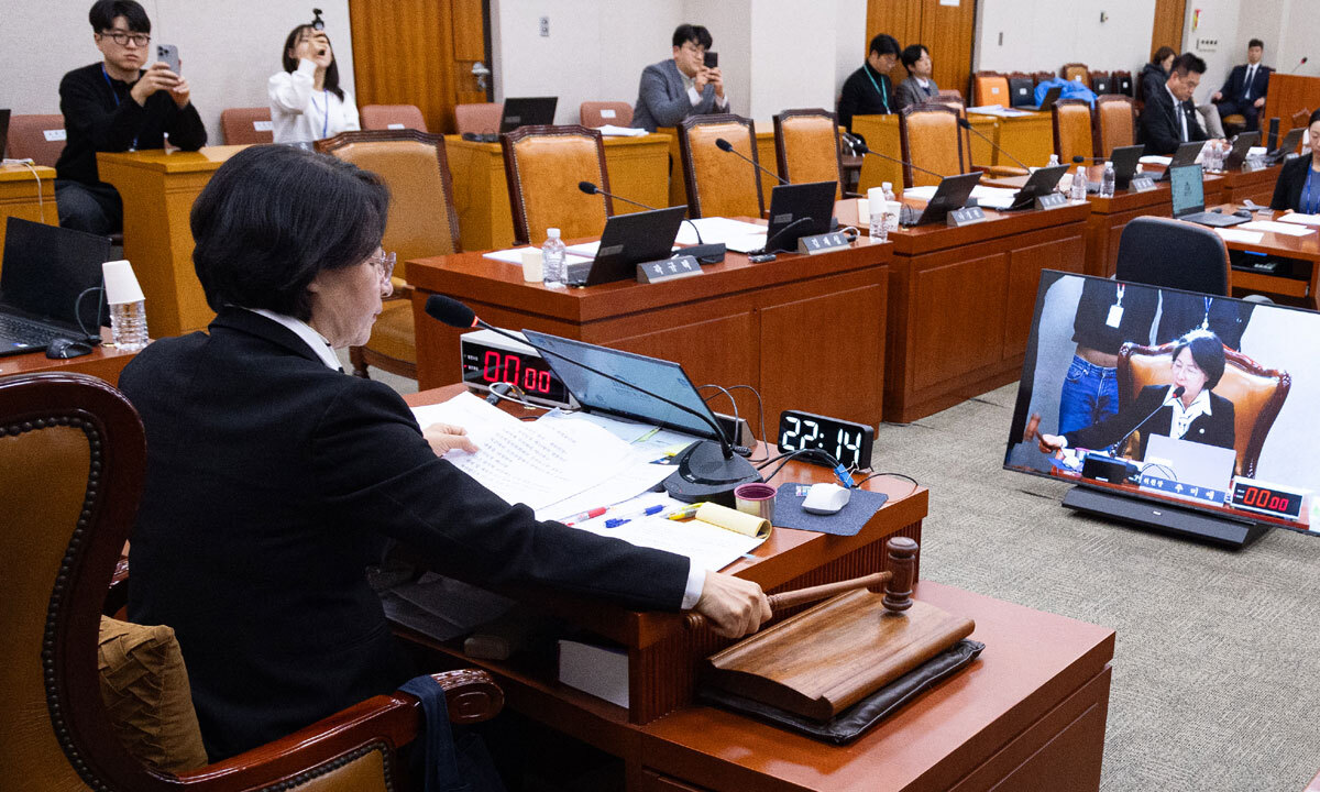 추미애 국회 법제사법위원장이 3일 서울 여의도 국회에서 열린 제429회 국회(정기회) 법제사법위원회 제16차 전체회의에서 의사봉을 두드리고 있다. 뉴스1 |