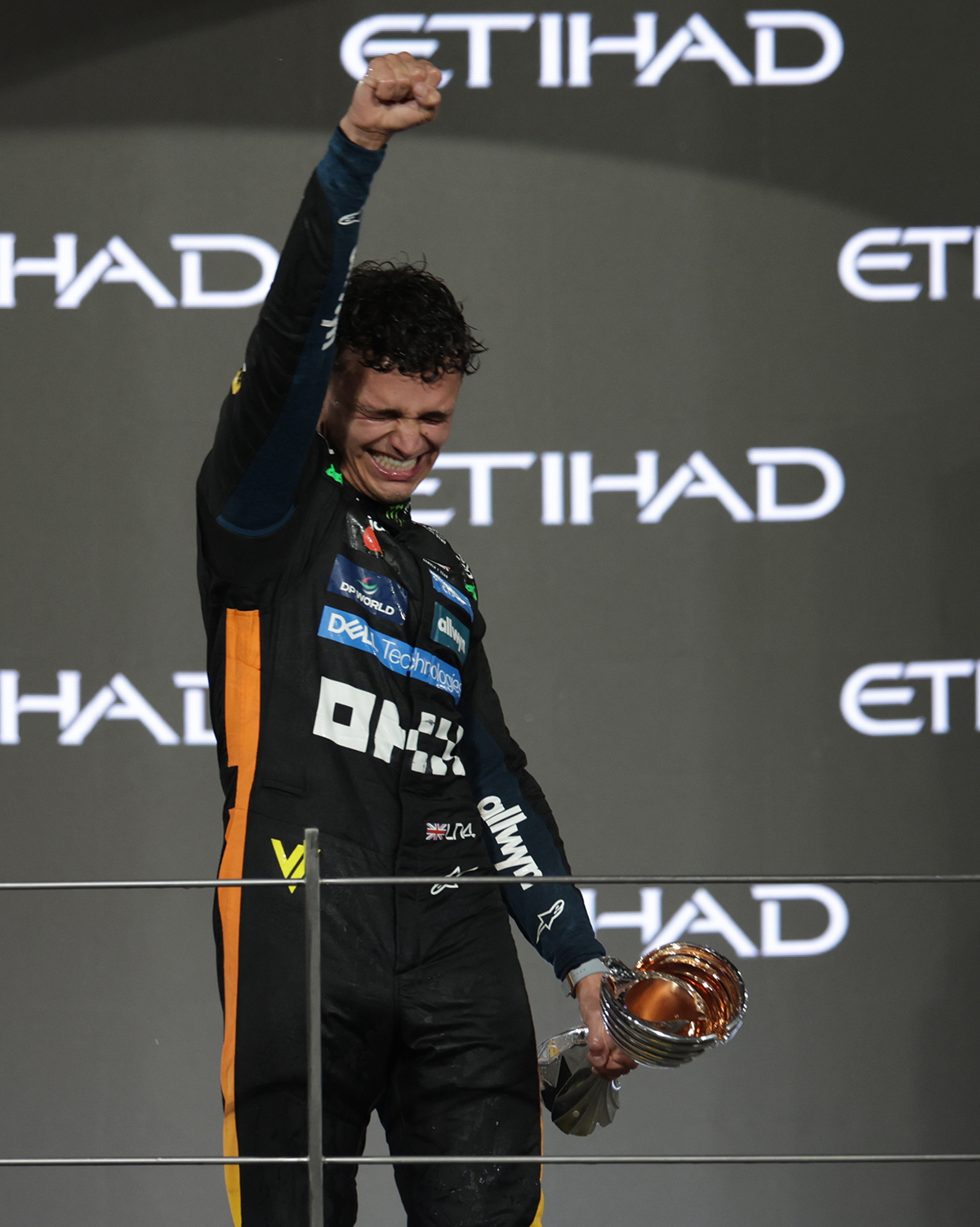 결승전을 앞두고 드라이버 랭킹 포인트에서 노리스(408점)와 페르스타펀(396점)의 격차는 12점이었다. 노리스로선 페르스타펀이 최종전에서 우승할 경우 반드시 3위 이내에 들어야만 드라이버 챔피언에 오르는 쉽지 않은 상황이었지만, 노리스는 챔피언 등극에 필요했던 ‘3위 이내 성적’을 지켜냈다.