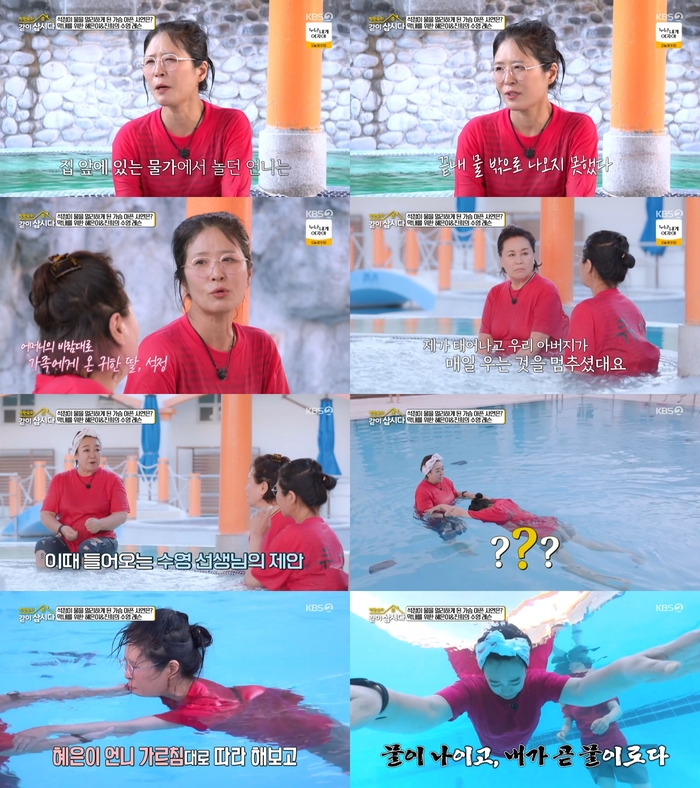 이날 황석정은 물놀이를 즐기는 혜은이를 바라보며 “수영 잘한다”고 감탄했다. 이어 “나는 수영을 못 한다”고 고백했다.