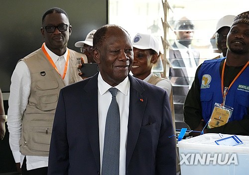 지난 25일(현지시간) 코트디부아르 아비장 투표소를 방문한 알라산 우아타라 대통령 |