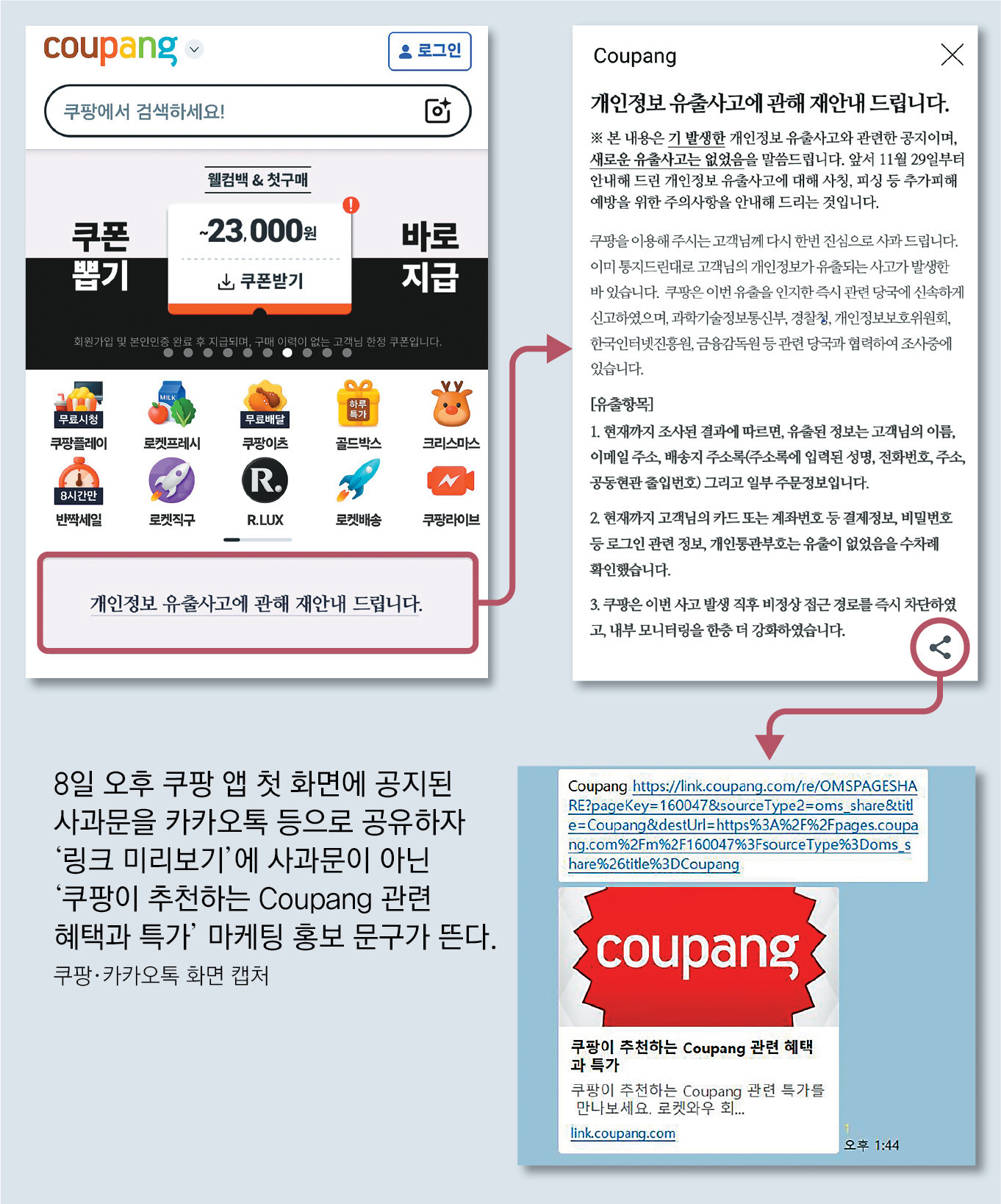 사과문 공유하면 ‘특가’ 광고 뜨게 한 쿠팡… 나흘새 181만명 ‘탈팡’