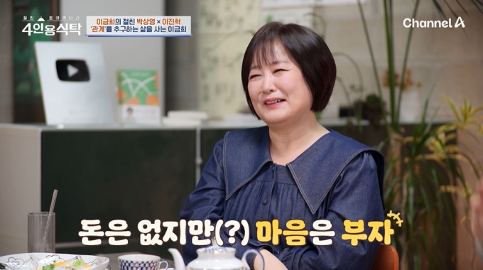 지난 8일 방송된 채널A '절친 토큐멘터리 4인용식탁'에는 아나운서 이금희가 절친한 작가 박상영, 가수 겸 배우 이진혁을 초대해 MC 박경림과 이야기를 나눴다.