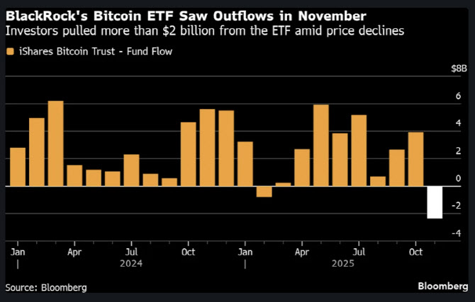 이 같은 기대 이하의 수익은 최근 자금 유출로 이어지고 있다. IBIT는 출시 이후 최장 기록인 6주 연속 자금 유출을 겪고 있다. 지난 11월 한 달 동안에만 23억 달러(약 3조3800억원) 이상이 빠져나갔다. 이는 역대 최대 월간 유출 규모이자 올해 두 번째 월간 순유출이다.