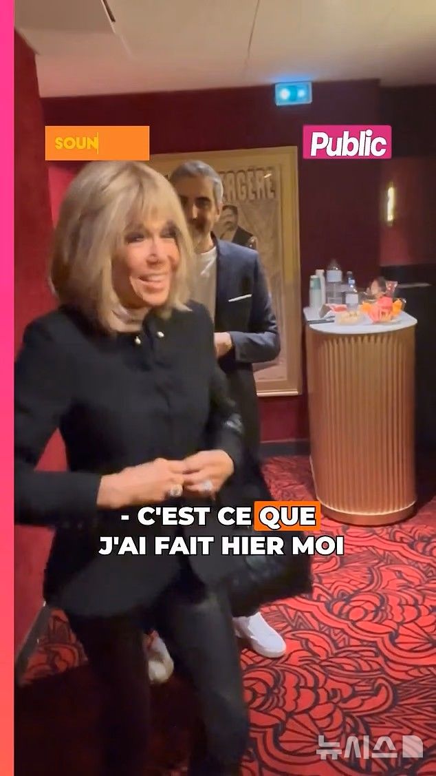 [서울=뉴시스] 브리지트 마크롱 여사가 지난 7일 무대 뒤에서 배우 아리 아비탄과 대화하고 있다. 마크롱 여사는 이 자리에서 아비타의 공연을 방해한 페미니스트들을 향해 "더러운 X년들"이라고 발언에 논란이 되고 있다. (사진출처: 데일리메일 캡처) 2025.12.09. |
