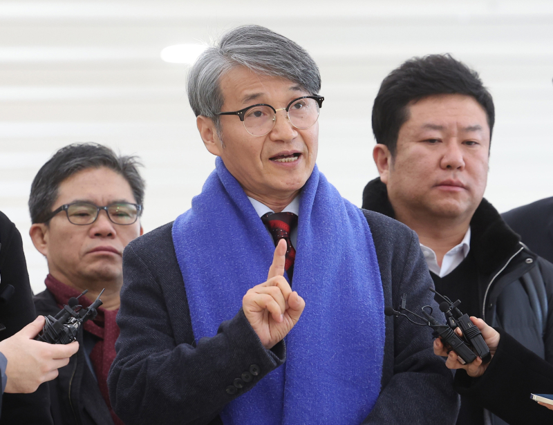 김건희 여사에게 디올백을 선물한 최재영 목사가 9일 서울 광화문 KT 빌딩에 마련된 민중기 특별검사 사무실에 참고인 신분으로 출석하며 취재진의 질문에 답하고 있다. |