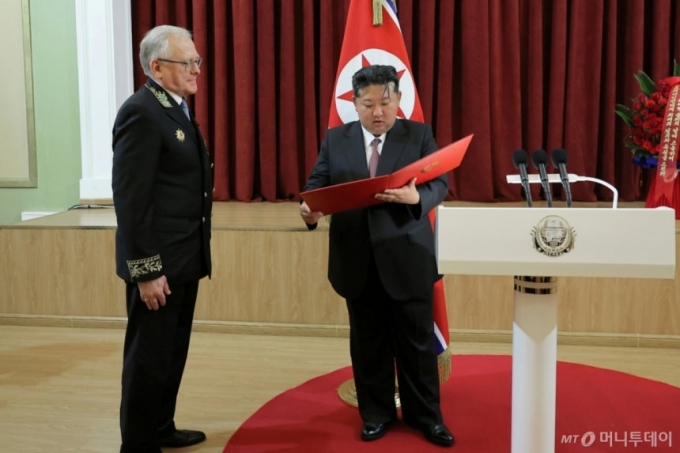 (평양 노동신문=뉴스1) = 북한 노동당 기관지 노동신문은 10일 김정은 총비서가 전날 직접 알렉산드르 마체고라 주북 러시아대사에게 노동당 중앙위원회·국무위원회·최고인민회의 상임위원회·내각이 러시아 지도부와 인민에게 보내는 '공동 축하문'을 전달했다고 보도했다. |