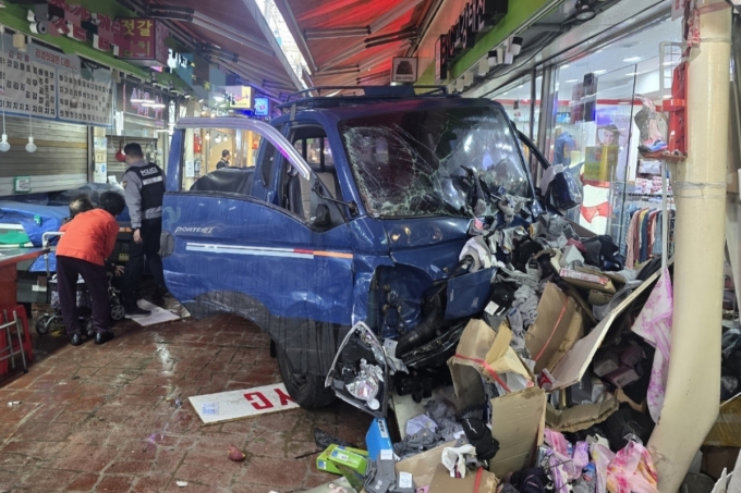 A씨가 운전한 화물차는 사고 직전 1~2m 거리를 후진한 뒤 갑자기 약 150m를 질주하면서 시장 상인 등을 연이어 들이받은 것으로 조사됐다.