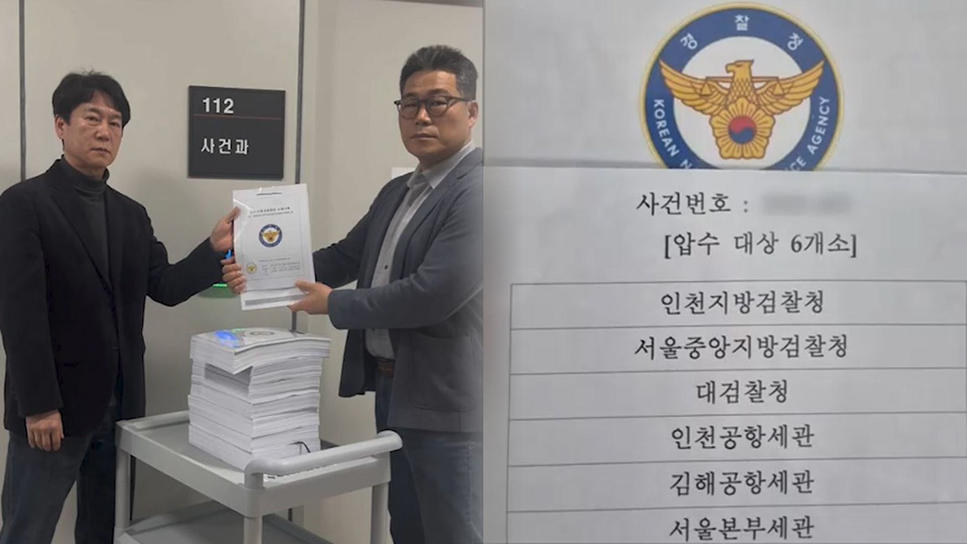 백 경정은 오늘(9일) 대검찰청과 서울중앙지검, 인천지검 등 검찰청 세 군데와 서울본부세관과 인천공항세관, 김해세관 등 관세청 3곳에 대한 압수수색 영장을 신청했다고 밝혔습니다.