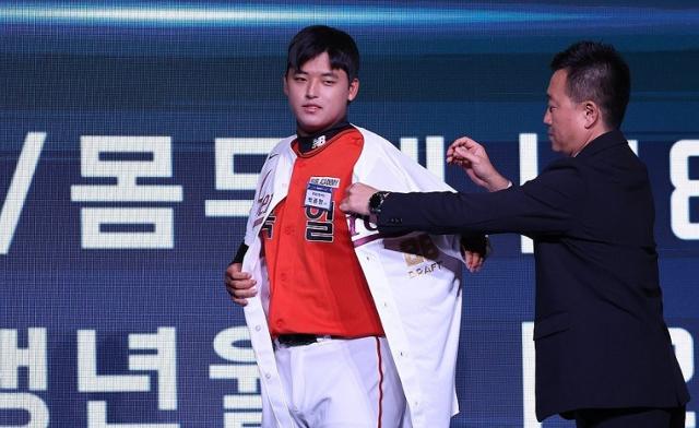 북일고 박준현이 2026년 KBO 신인드래프트에서 전체 1순위로 키움 유니폼을 입고 있다. 연합뉴스 |