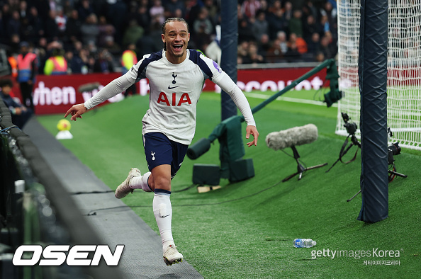브렌트포드전 첫 골로 시몬스는 반전에 성공했다. 과연 그는 손흥민의 7번에 어울리는 선수가 될 수 있을까. / jasonseo34@osen.co.kr
