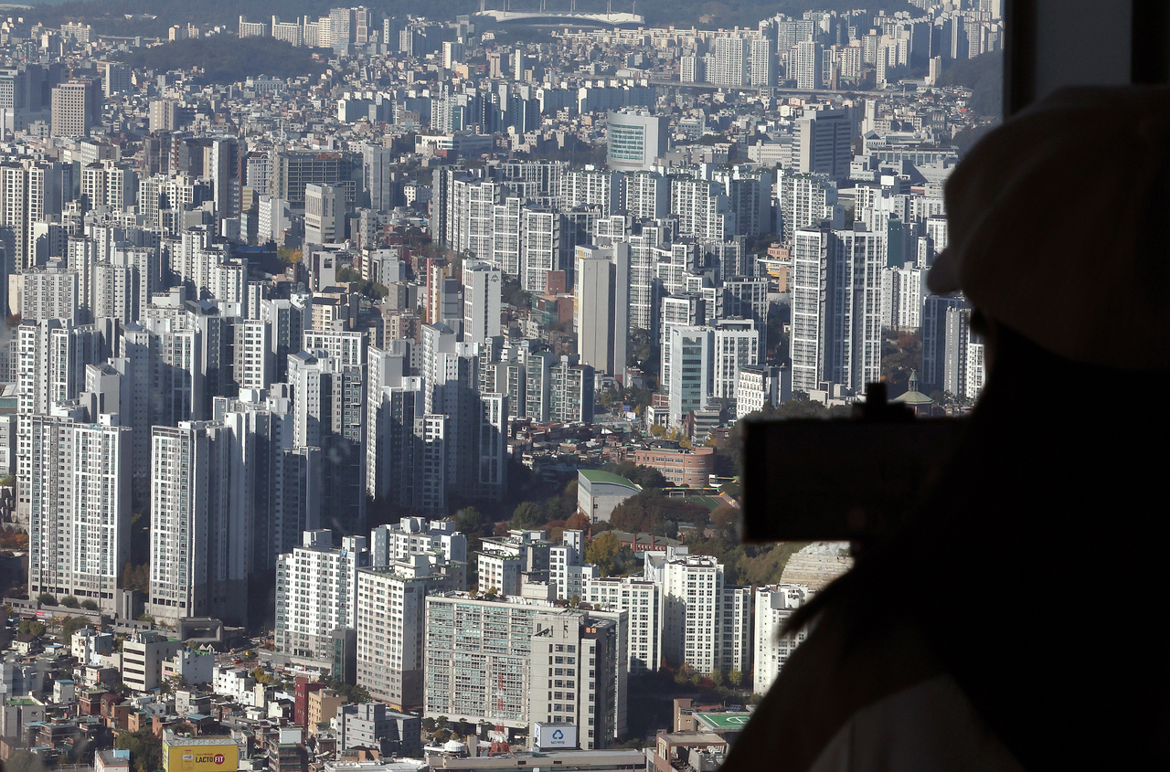 10·15 부동산 대책이 시행되고 아파트 매수 심리가 2개월여 만에 꺾인 것으로 나타난 지난 3일 남산에서 바라본 서울시내 아파트 단지. [연합] |