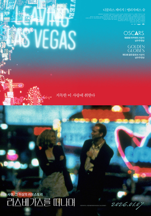 이번에 공개된 메인 포스터는 화려한 네온사인으로 빛나는 라스베가스 거리를 배경으로 다정한 두 주인공의 모습을 담아 강렬한 인상을 남긴다. 포스터 상단의 영어 원제 LEAVING LAS VEGAS와 붉은색과 푸른색의 그라데이션으로 완성한 포스터 디자인은 뜨거운 사랑의 감정뿐만 아니라 메인 카피인 '사랑, 그 이상의 러브 스토리'를 펼칠 주인공들의 삶을 시각적으로 담았다. 또한 '지독한 이 사랑에 취한다'라는 카피는 영화가 품은 진한 멜로 무드를 관객에게 선사할 것을 예고한다. 포스터 우측에는 니콜라스 케이지의 제68회 아카데미 남우주연상 수상과 제53회 골든글로브 남우주연상을 수상 이력이 함께 표기되어 이번 재개봉을 통해 다시 한번 스크린에서 관객들에게 선사할 압도적 연기력을 기대케 한다.