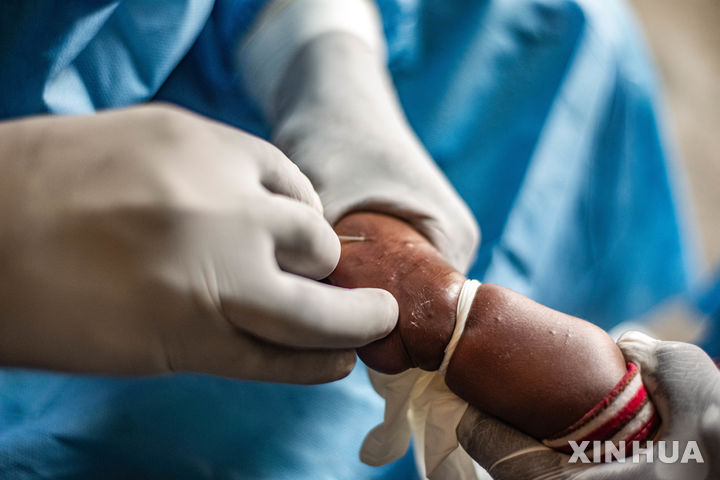 [고마=신화/뉴시스] 15일(현지시각) 콩고민주공화국(DRC) 고마 인근 니라공고의 한 병원에서 엠폭스(MPOX·구 원숭이두창)에 걸린 어린이가 치료받고 있다. 전날 세계보건기구(WHO)는 DRC에서 발생한 엠폭스가 주변국으로 빠르게 확산하자 2년 만에 국제적 공중보건 비상사태(PHEIC)를 선포했다. 2025.12.10. |