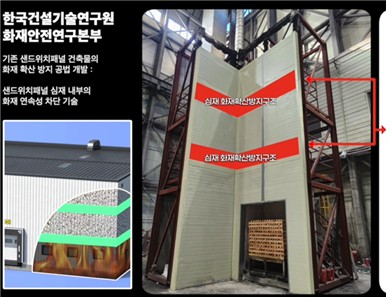 이 공법을 적용한 샌드위치 패널의 화재 대응 성능은 기존 대비 2배가량 향상된 것으로 나타났다.