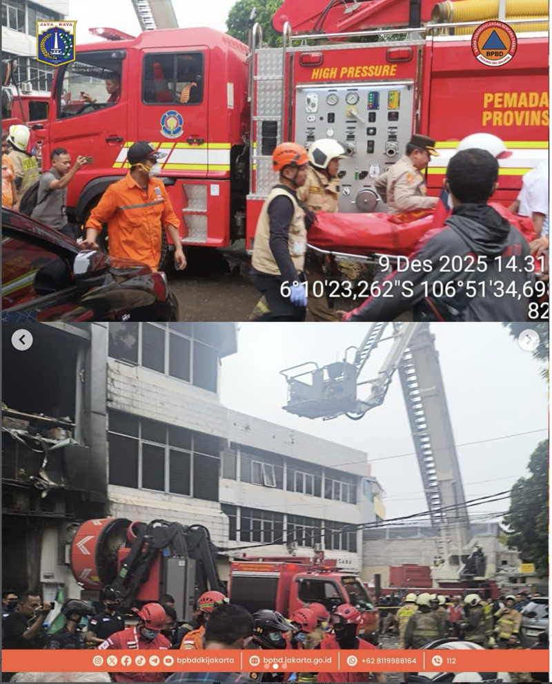 BPBD는 “건물 화재는 9일 오후 12시 43분에 발생해 5시간 뒤에 진압되었으며 총 76명의 피해자 중 22명이 사망했으며 54명은 구조됐다” 고 밝혔다. 사망자 22명 중 15명은 여성, 7명은 남성으로 확인되었으며 시신은 신원 확인을 위해 경찰병원으로 이송되었다.
