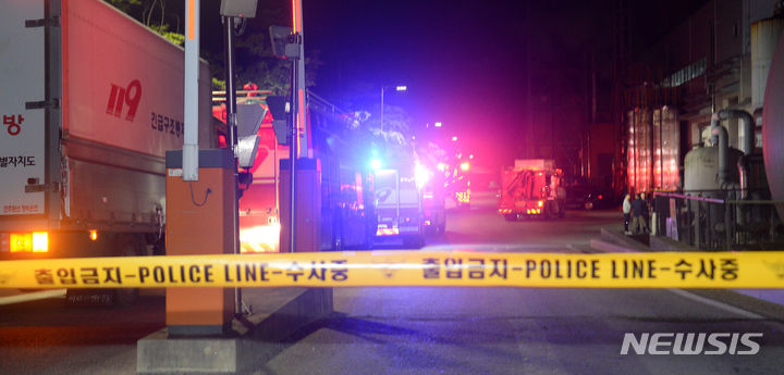 [전주=뉴시스] 김얼 기자 = 지난해 5월2일 전북 전주시 전주리사이클링센터에서 원인불명의 가스 폭발사고가 발생해 입구에 경찰통제선이 걸려 있다. 2024.05.02. pmkeul@newsis.com |