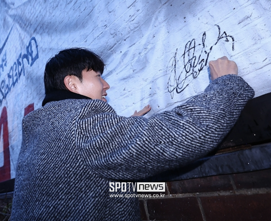 벽화에는 유로파리그 우승 트로피를 들고 있는 모습과 찰칵 세리머니, 등번호 7, 태극기까지 담겼다. 벽 한가운데엔 “SONNY, SPURS LEGEND”라는 선명한 문구가 새겨졌다. 토트넘이 직접 선포한 공식적인 ‘오피셜이었다. 손흥민은 벽화 앞에서 직접 사인까지 남겼다.