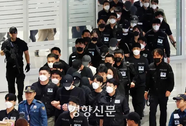 지난 10월18일 캄보디아에서 보이스피싱 등 범죄에 가담해 현지 이민 당국에 구금됐던 한국인들이 인천공항을 통해 송환되고 있다. 문재원 기자 |