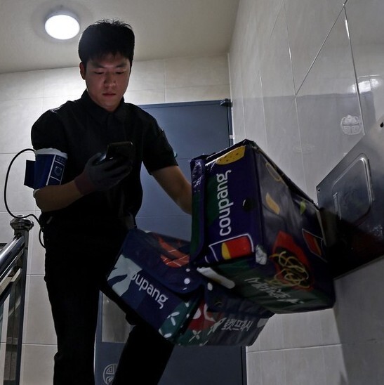 불행히도 이 구역은 엘리베이터가 있는 건물이 20~25%에 불과했다. 7층 건물인데 엘리베이터가 없는 곳도 있었다. 계단을 연달아 몇 번 오르자, 최저 4도까지 떨어진 초겨울 날씨에도 금세 땀이 났다. 배송 시작 10분 만에 입고 있던 패딩을 벗었는데, 그래도 반팔 티셔츠와 기능성 운동복 바지는 곧 땀으로 흠뻑 젖었다. 그렇게 첫 배송 1회전이 진행된 2시간30분 동안, 기자는 44가구에 53개 물품을 배송했다. 김호준이 배송한 수량의 절반 정도였다.