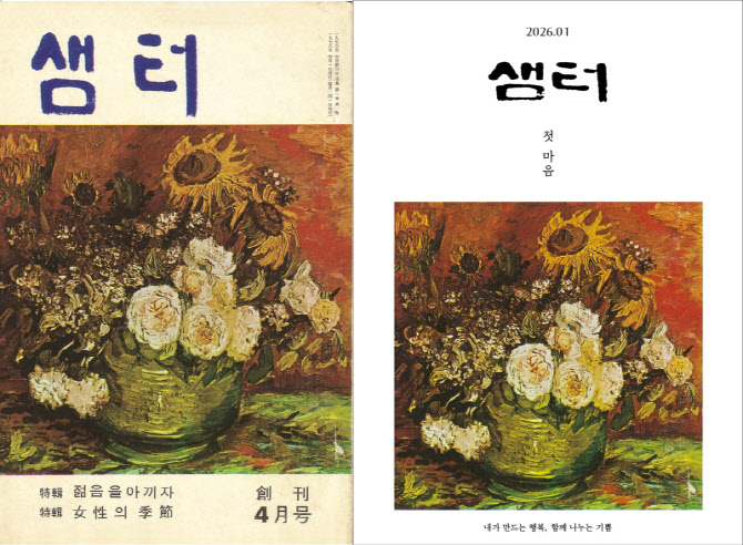 국내 최장수 교양지 월간 '샘터' 1970년 4월 창간호 표지(왼쪽), 마지막 호가 될 2026년 1월호 표지. (사진=샘터사) |