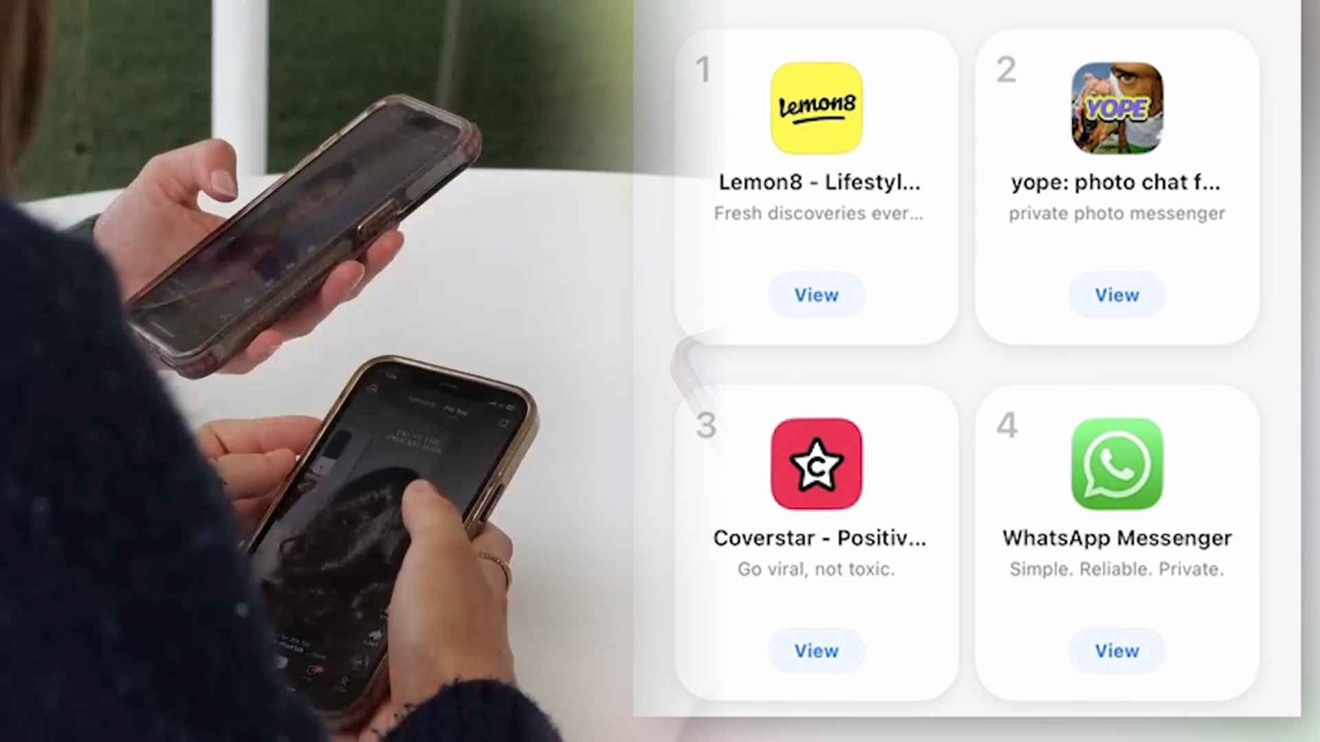 현지시간 10일 호주의 아이폰 앱 장터 앱스토어의 무료 앱 순위를 보면 중국 바이트댄스가 만든 소셜미디어 서비스인 '레몬8'과 '요프', '컨버스타' 등이 각각 1~2위를 차지하고 있습니다.