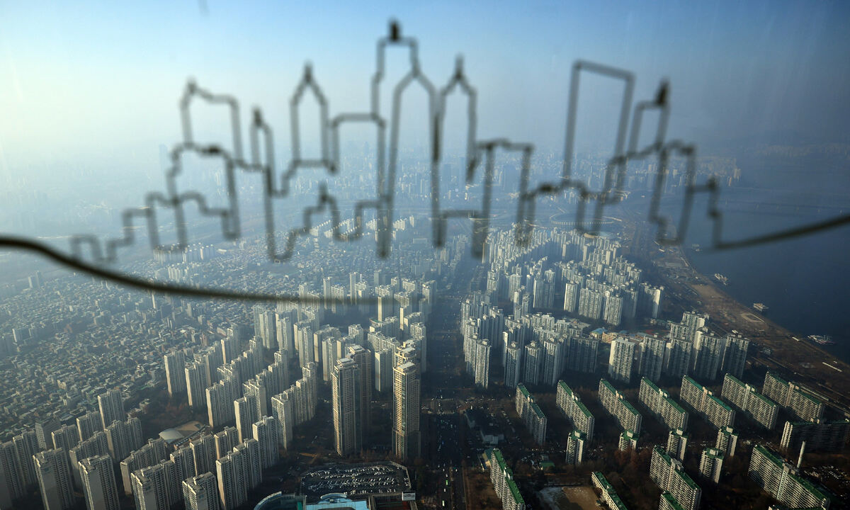 서울 송파구 롯데월드타워에서 바라본 송파구 아파트 단지. 뉴스1 |