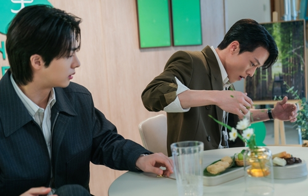 사진 속 공지혁과 김선우는 사뭇 날카로운 눈빛으로 신경전을 펼치고 있는 것처럼 보인다. 급기야 나란히 앉은 두 사람이 서로 물이라도 엎은 듯 허둥대고 있어 웃음을 자아낸다. 반면 동시에 두 남자의 사랑을 받고 있는 고다림은 다소 민망한 듯, 당황한 듯한 표정으로 이들의 신경전을 지켜보고 있다. 세 사람이 한 자리에 모인 이유는 무엇일까. 두 남자의 신경전에 고다림은 어떤 반응을 보일까.