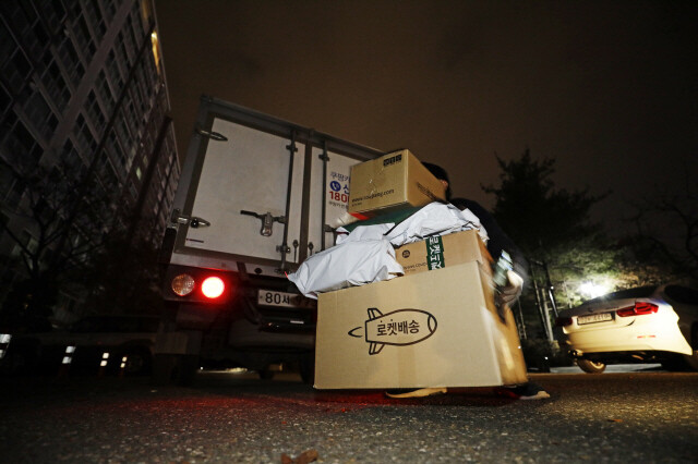새벽배송을 하고 있는 쿠팡맨. 김명진 기자 littleprince@hani.co.kr |
