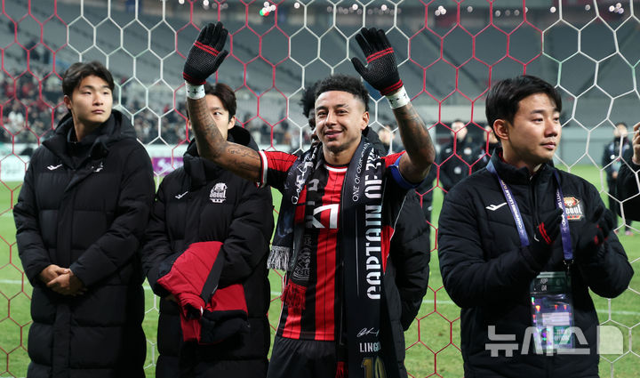 [서울=뉴시스] 김선웅 기자 = FC서울 린가드가 10일 서울 마포구 서울월드컵경기장에서 열린 2025-2026시즌 아시아축구연맹(AFC) 챔피언스리그 엘리트(ACLE) 리그 스테이지 6차전 FC서울 vs 멜버른 시티 경기 겸 서울 고별전을 마친 뒤 팬들에게 작별 인사를 하고 있다. 2025.12.10. mangusta@newsis.com |