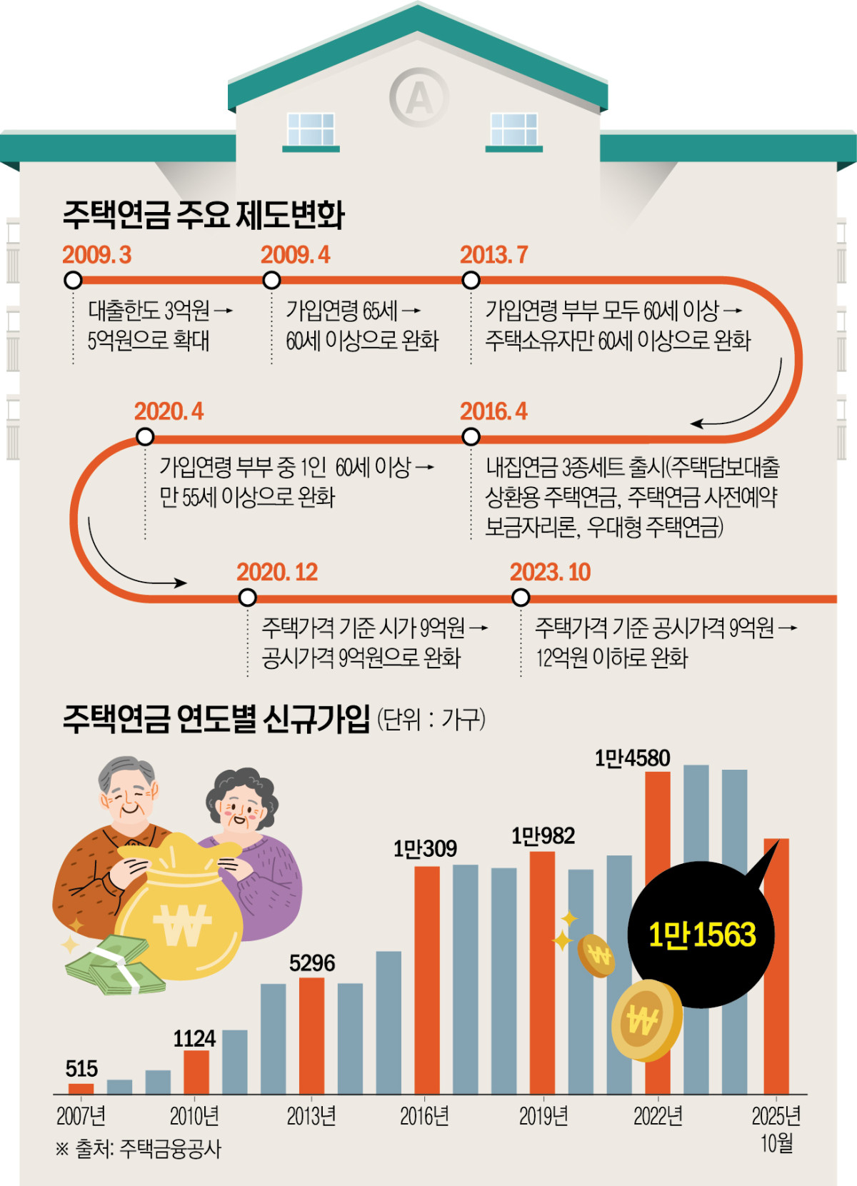 주택금융공사가 현재 '공시가격 12억 원'으로 설정된 주택연금 가입 기준 완화를 추진한다. 수도권 집값 급등으로 제도 밖으로 밀려난 고령층을 더 많이 편입시키겠다는 취지다. 현금 흐름은 부족하지만 주택 자산 비중이 높은 고령층 현실을 고려할 때 주택연금은 노후소득 보장의 중요한 축으로 부상하고 있다. 이번 논의가 주택연금 제도의 실효성을 높이는 계기가 될 수 있을지 관심이 쏠리고 있다.