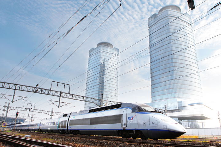 [대전=뉴시스] KTX가 대전에 위치한 철도공동사옥을 지나고 있다.(사진=한국철도공사 제공) *재판매 및 DB 금지 |