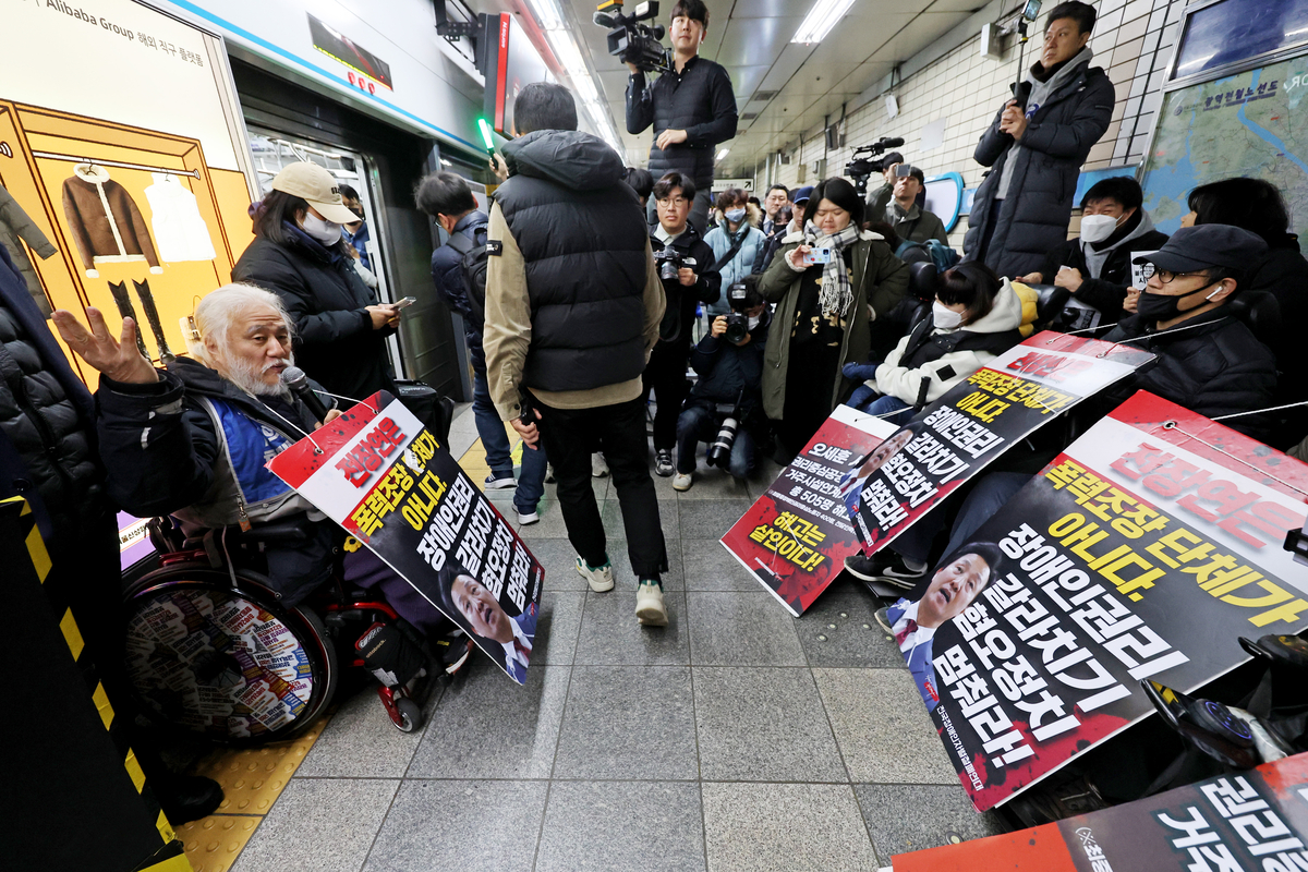 서울교통공사는 전국장애인차별철폐연대(전장연)의 탑승 시위로 11일 오전 8시 40분부터 9시 5분까지 지하철 4호선이 혜화역을 무정차 통과했다고 밝혔다.