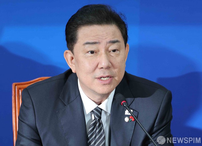 [서울=뉴스핌] 윤창빈 기자 = 김병기 더불어민주당 원내대표가 11일 서울 여의도 국회에서 열린 정책조정회의에서 모두발언을 하고 있다. 2025.12.11 pangbin@newspim.com