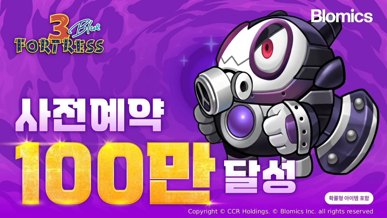 블로믹스는 CCR이 개발한 신작 슈팅 전략 게임 ‘포트리스3 블루’의 사전예약자가 100만명을 돌파했다고 11일 밝혔다.
