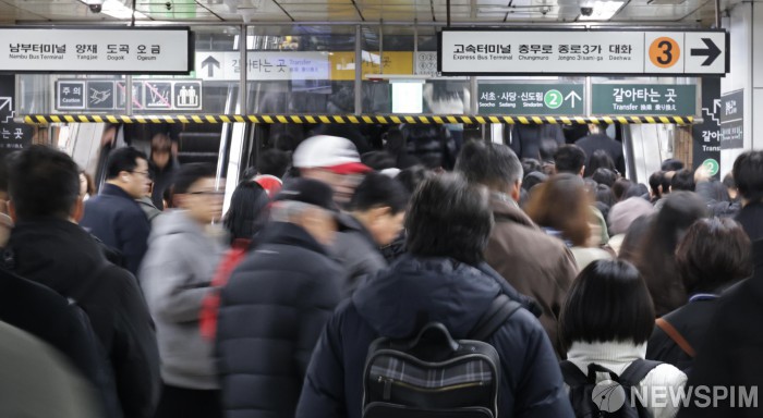 [서울=뉴스핌] 양윤모 기자 = 서울지하철 1∼8호선을 운영하는 서울교통공사 노조의 총파업 예고일을 하루 앞둔 11일 교대역에서 시민들이 지하철을 이용하고 있다. 2025.12.11 yym58@newspim.com