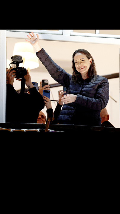 마차도는 11일 오전 오슬로에 무사히 도착한 뒤 한 호텔에서 11개월 만에 공개석상에 모습을 드러냈다. 청바지와 패딩 차림으로 발코니에 선 마차도는 자신을 환영하기 위해 모여든 현지 베네수엘라인 지지자들에게 손을 흔들며 “여러분 모두 베네수엘라로 돌아오면 좋겠다”고 말했다. 이후 호텔 밖으로 나와 군중들과 악수와 포옹을 나눴다. 지지자들은 “자유!” “대통령!”을 외치며 그를 환영했다.