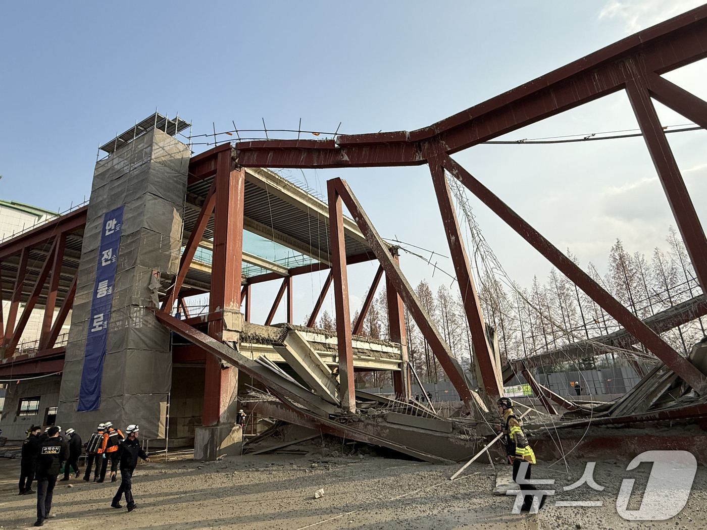 11일 오후 1시 58분쯤 광주 서구 치평동(상무지구)의 광주대표도서관 공사 현장에서 레미콘 타설 중 붕괴 사고가 발생했다. 사진은 사고 현장 모습. 2025.12.11/뉴스1 ⓒ News1 김태성 기자