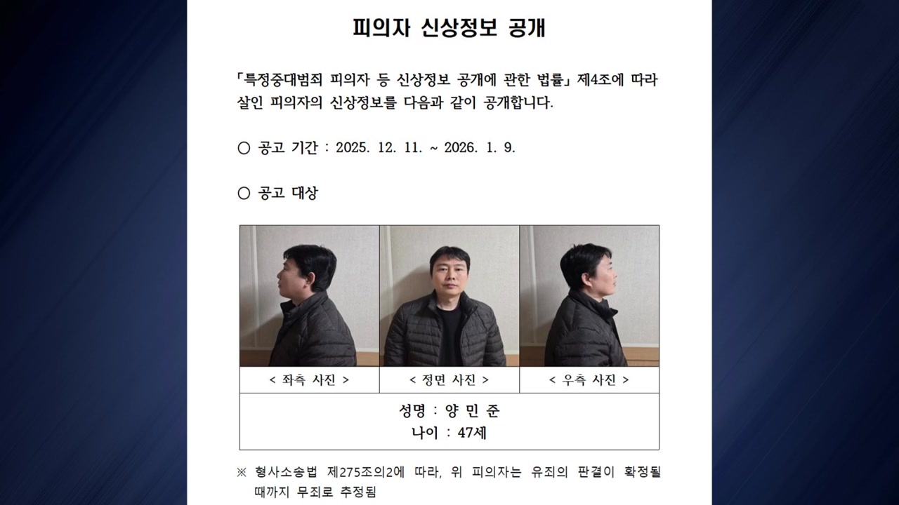 충남경찰청은 오늘(11일) 홈페이지를 통해 양 씨의 사진과 이름, 나이 등을 공개했습니다.