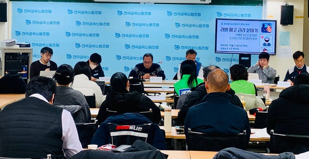 플랫폼노동희망찾기가 11일 ‘라벨 떼고 권리 붙이기’ 정책토론회를 열고 있다. 플랫폼노동희망찾기 제공 |