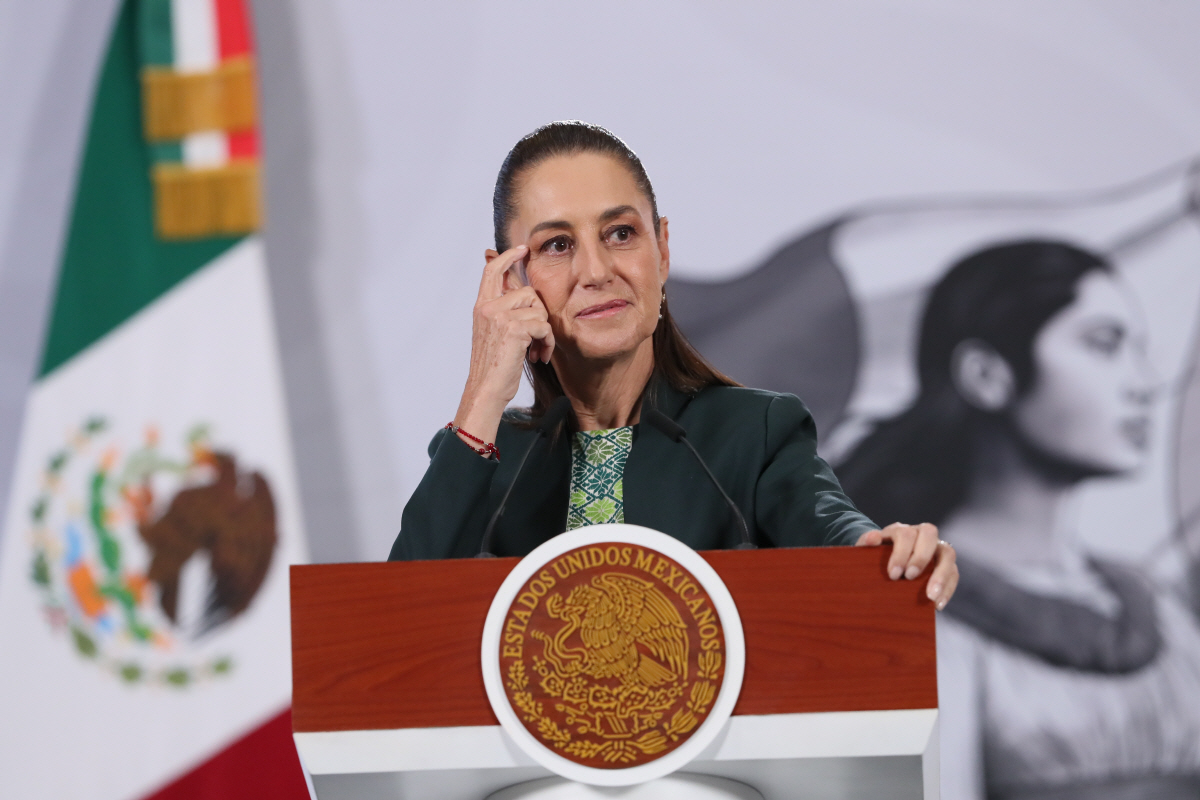 클라우디아 셰인바움 멕시코 대통령이 10일(현지시간) 대통령궁에서 열린 기자회견에서 발언하고 있다. |