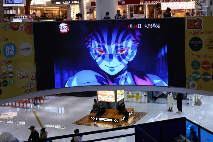 ‘귀멸의 칼날’ 홍보 동영상이 상영중인 베이징 쇼핑몰. [로이터 연합뉴스] |