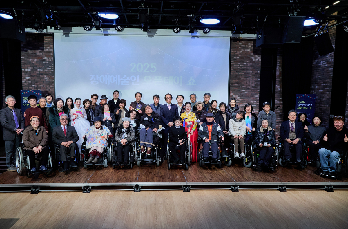 ‘2025 장애예술인 오픈데이쇼’에 참석한 장애예술인과 주요 인사들이 단체 기념촬영을 하고 있다. 한국장애예술인협회 제공 |