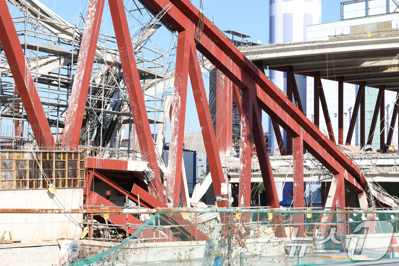 12일 오후 광주 서구 치평동(상무지구)의 광주대표도서관 공사 현장에서 레미콘 타설 중 붕괴 사고로 구조물 안정화와 보강작업을 위해 수색작업이 멈춰있다. ⓒ News1 박지현 기자 |